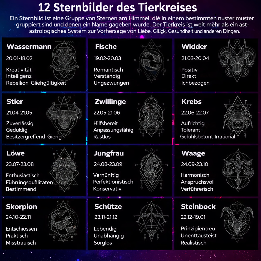 • Motiv / Symbol: Sternzeichen (12 Varianten verfügbar)